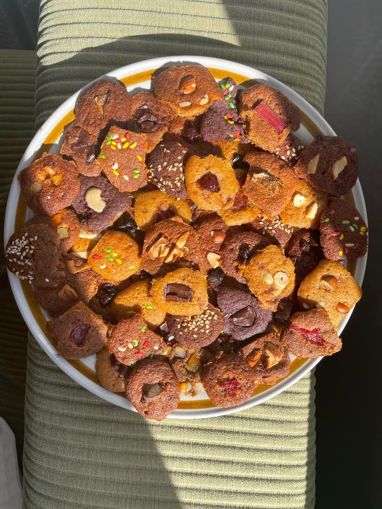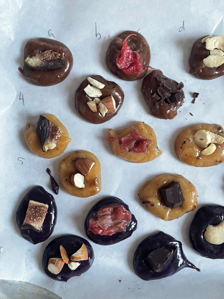 assign one mix-in to each cookie, ensuring each cookie in the batch has a unique mix-in (e.g., one gets a fig piece, another an almond, etc.)