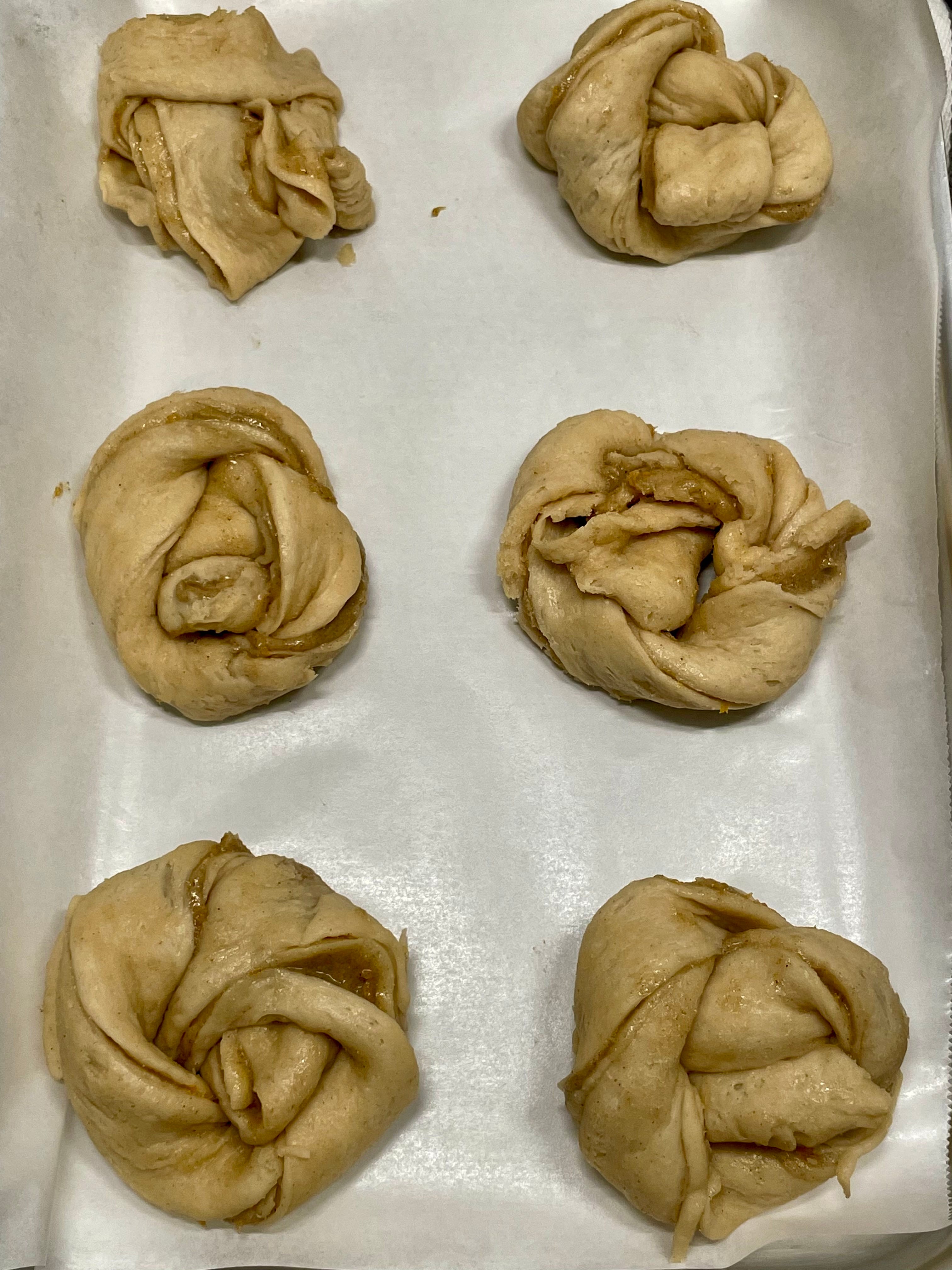 place evenly on a baking tray with room to spread, cover with a clean tea-towel and leave to rise in a warm spot for 30 minutes