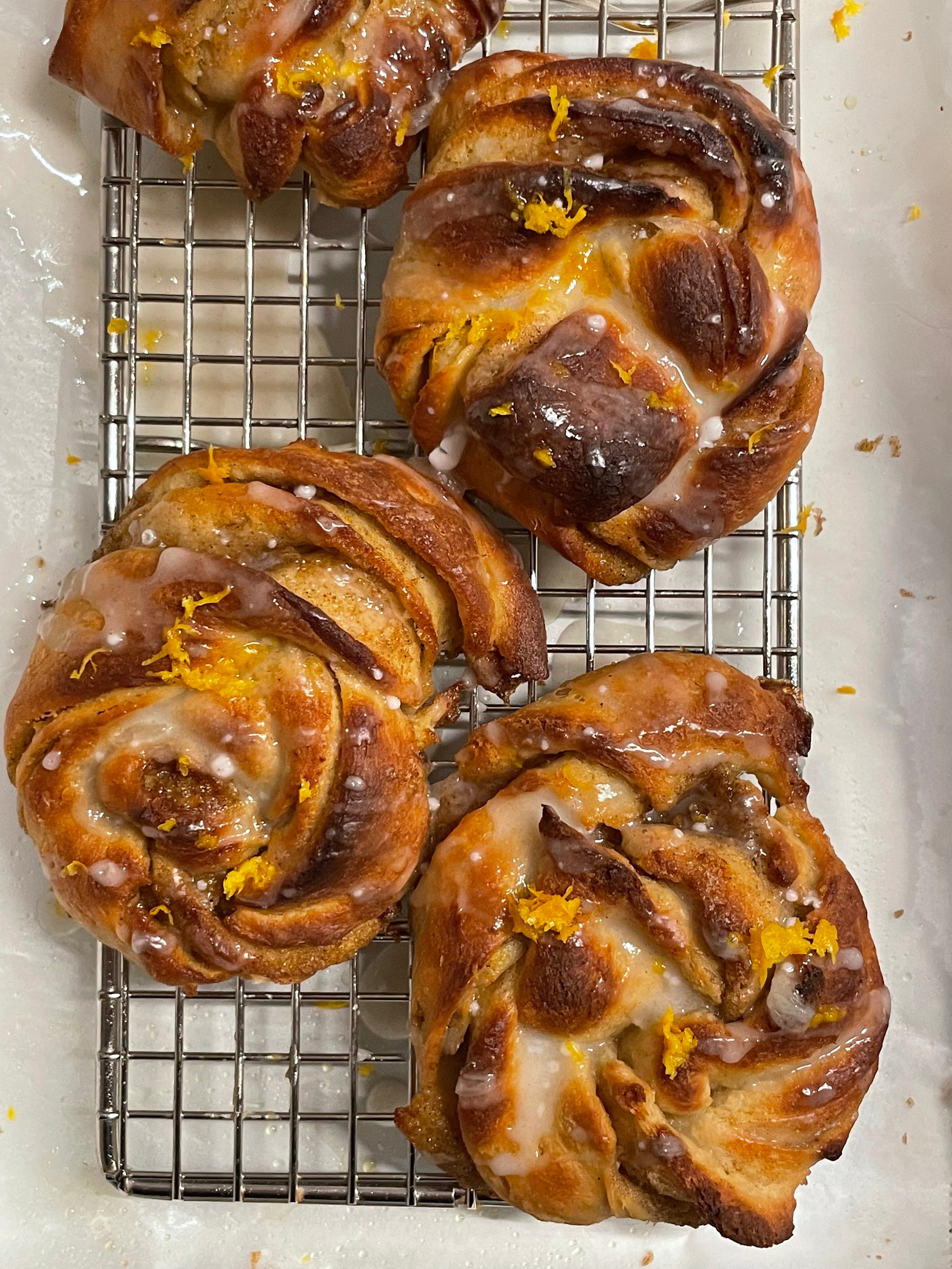 optional: make a quick glaze with orange juice and powdered sugar and drizzle over once cooled