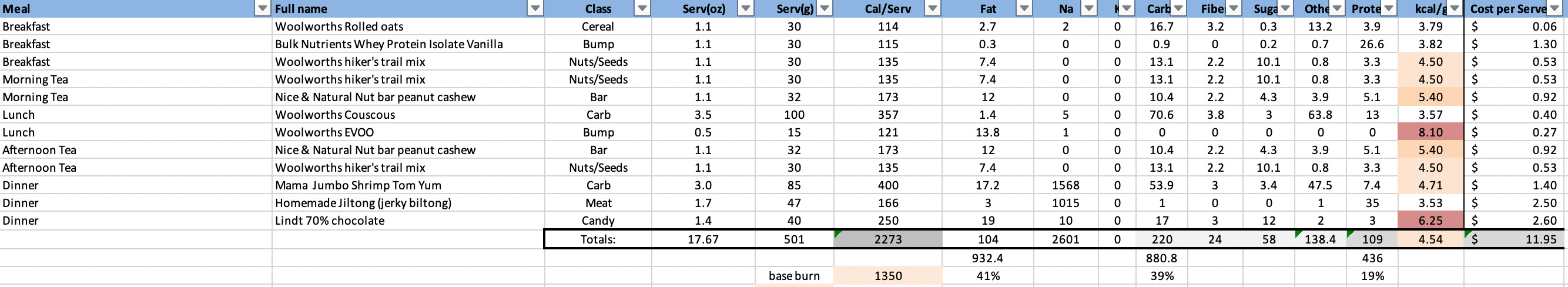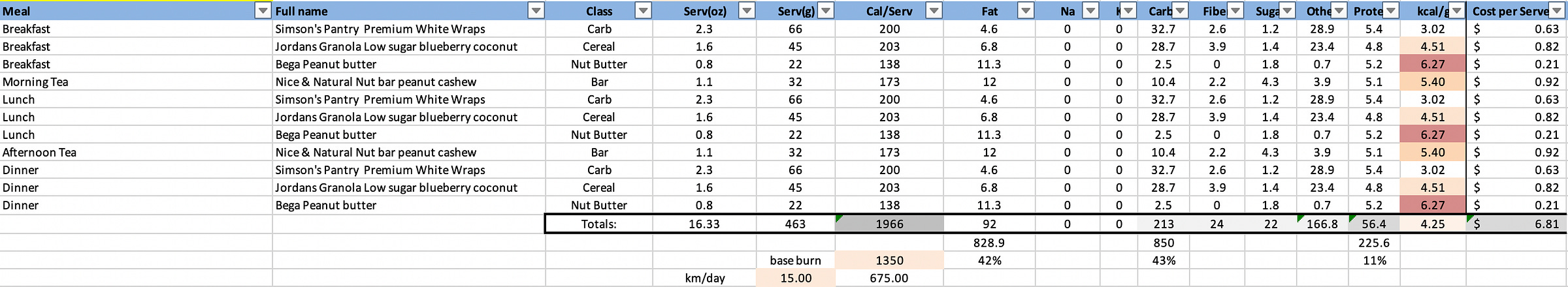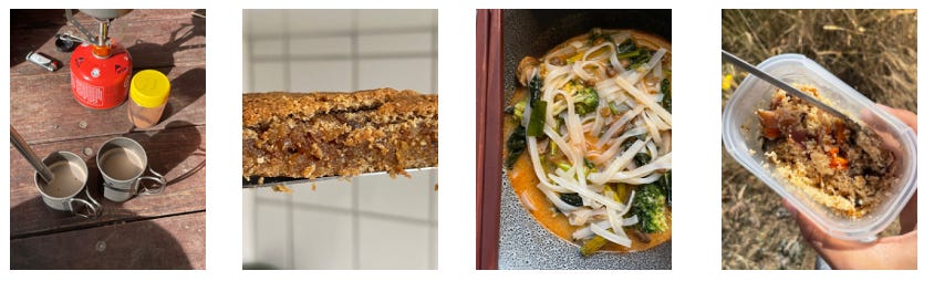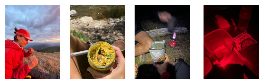 how long is it? i can happily eat the same meal on repeat for breakfast, lunch and dinner for a day or two but need a little variety after that. if it’s longer than a few days, i’ll start to focus more on micronutrients, getting my (dehydrated) vegetables in, and thinking about my saturated fat and sodium intake