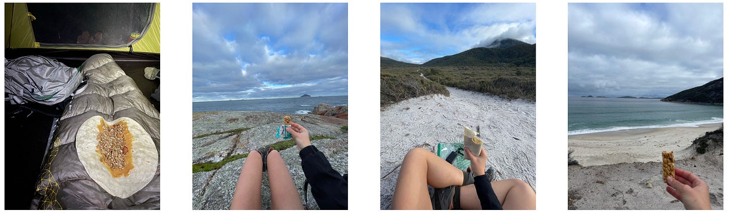 what do i feel like? if you wouldn’t eat it at home, you probably won’t eat it on the trail. make sure you genuinely like eating what you’re packing! nothing worse than being hungry and choking down foods you just really don’t like because “it’s what hikers eat”!