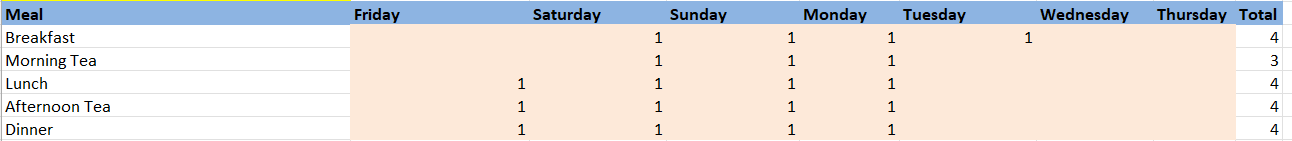 we can tally up the quantity of each meal required pretty easily