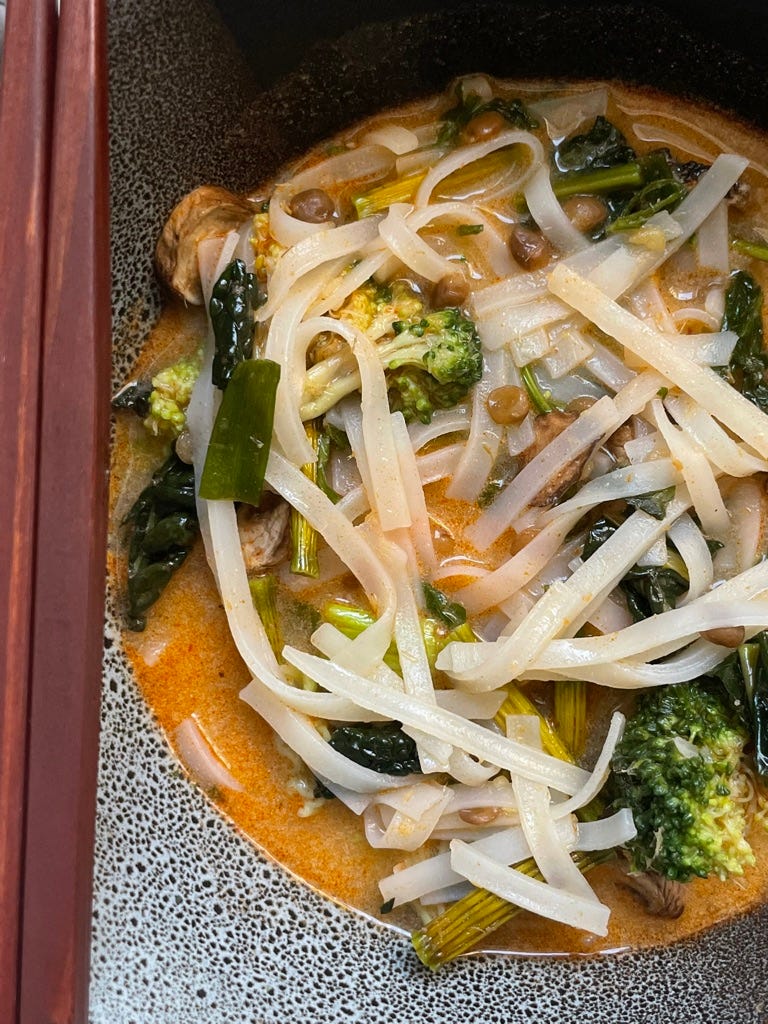 i like it with chicken (a classic tom kha gai) but have a feeling this would be amazing with beef jerky too, or salami if you’re feeling super rogue