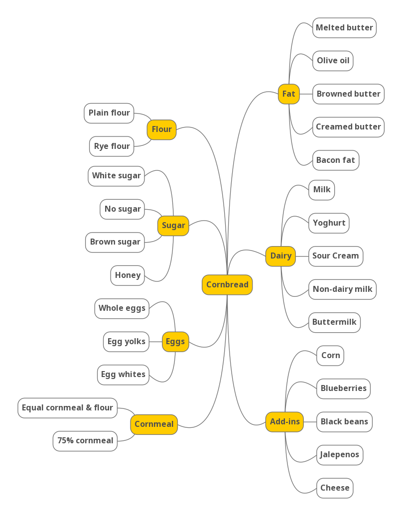 there are at least 6,000 possible permutations (i did do the maths) of cornbread recipes using the options outlined above