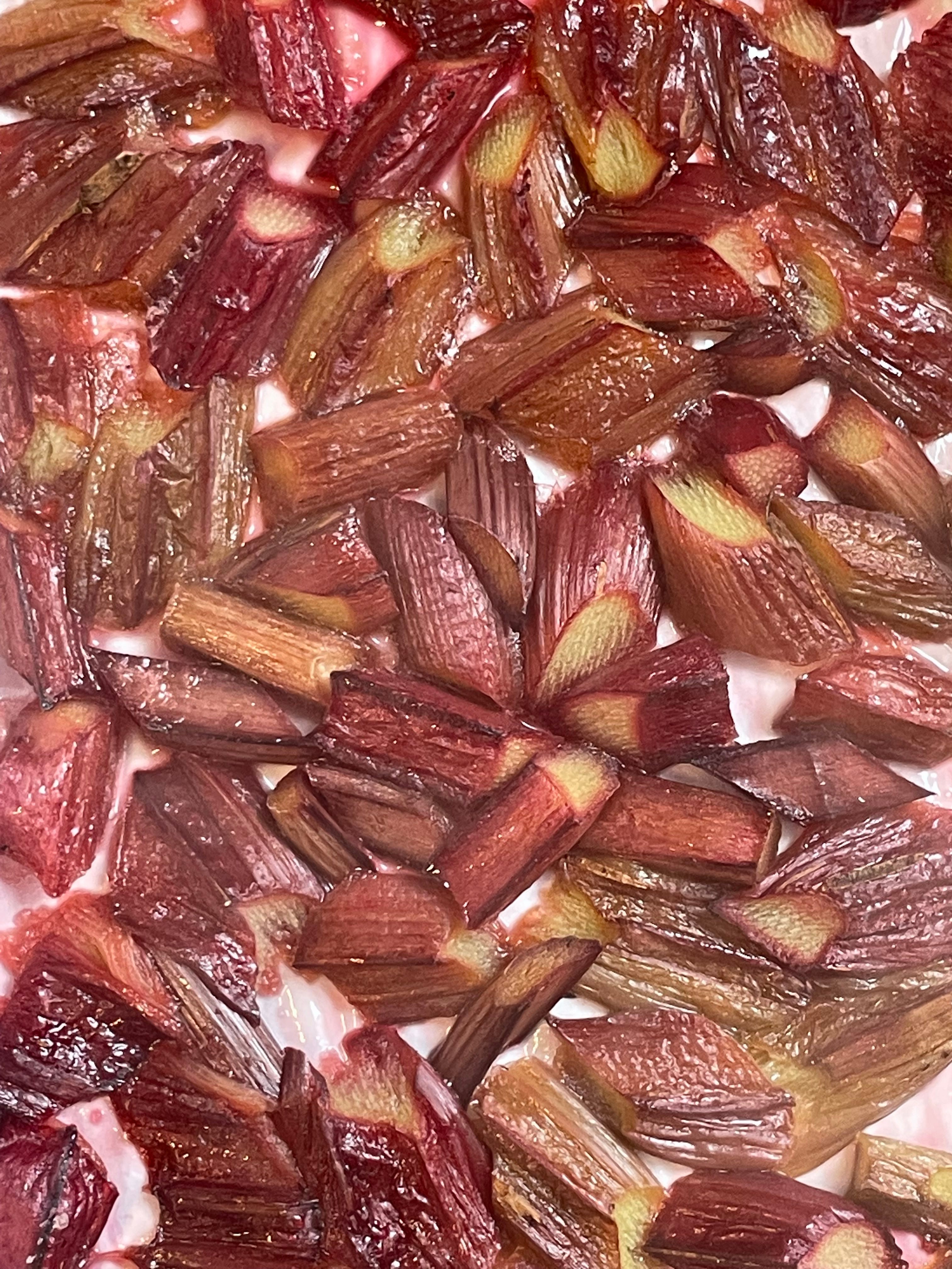 transfer the rhubarb, sugar and juices to a lined baking tray and roast covered for 15 minutes, and uncovered for a further 5 minutes until cooked through but not mushy