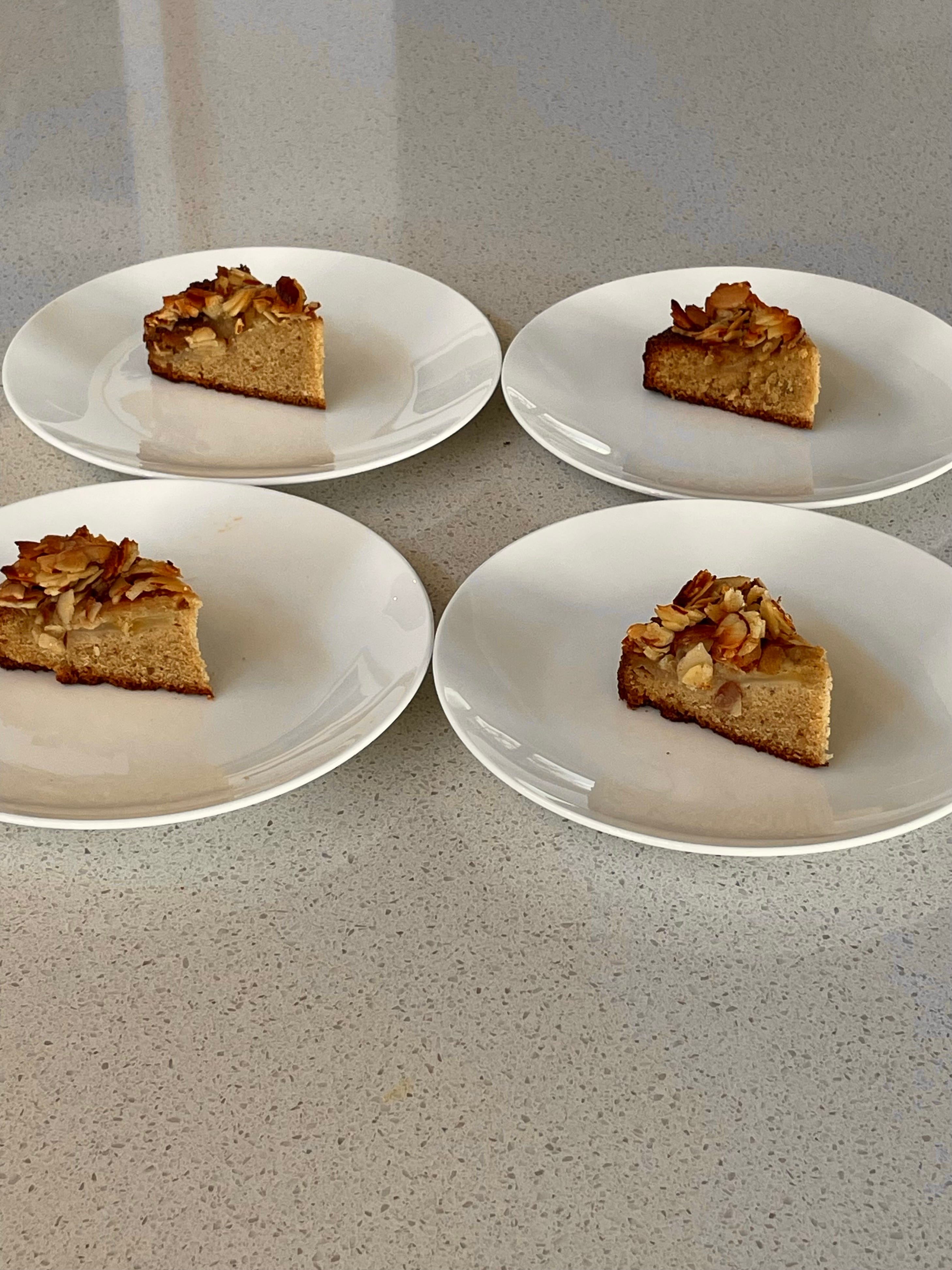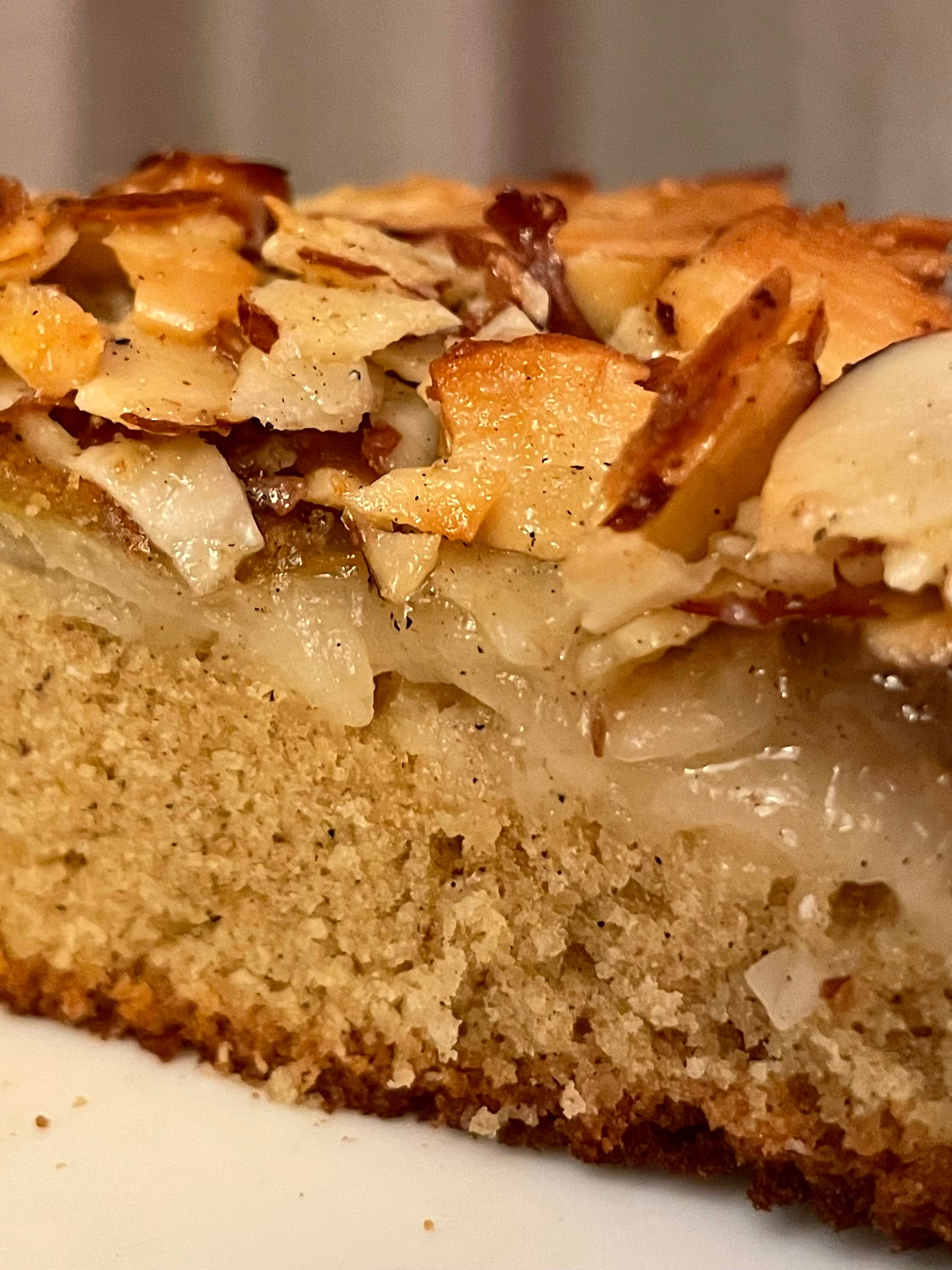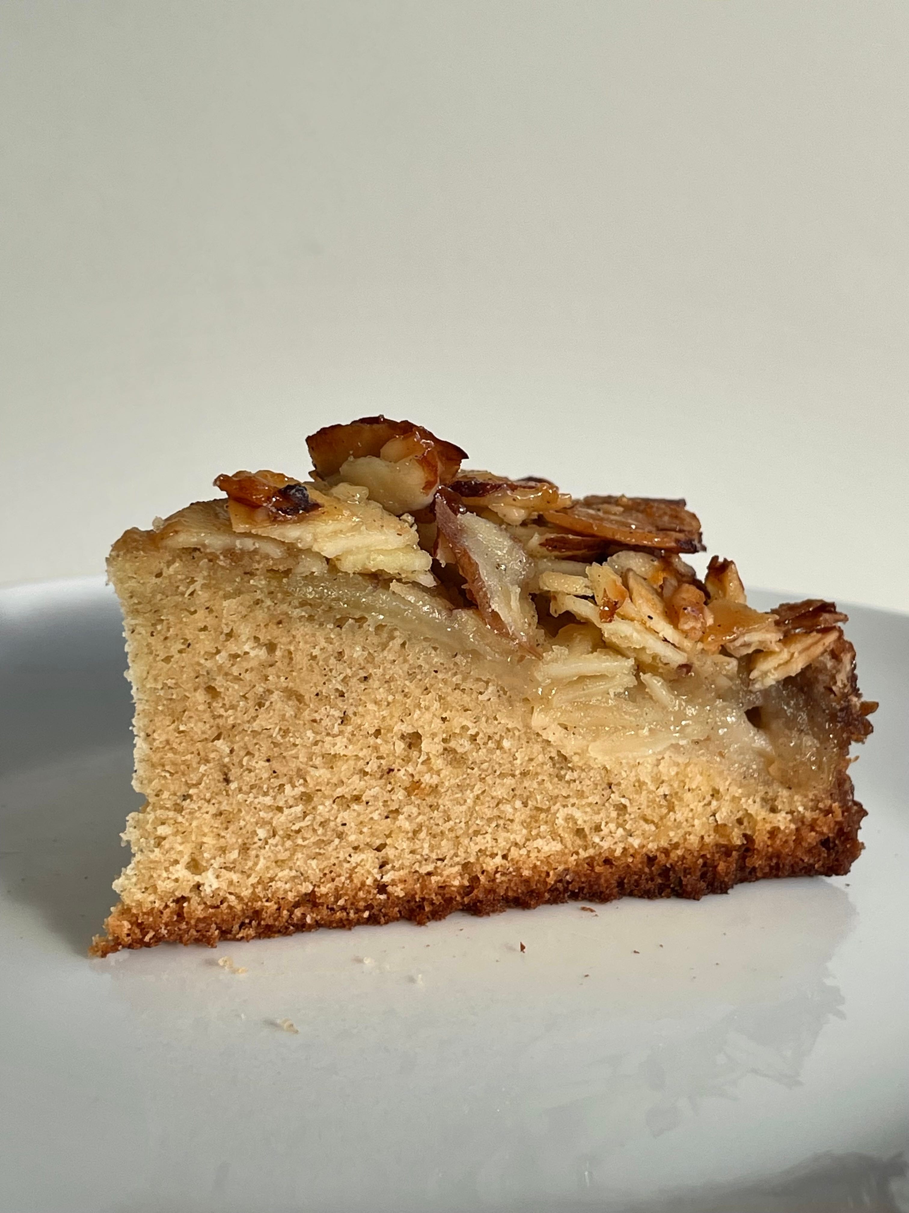 the crunchy almond topping is baked directly onto the cake and takes an immense amount of self control not to pick it off bit by bit while waiting for the cake to cool