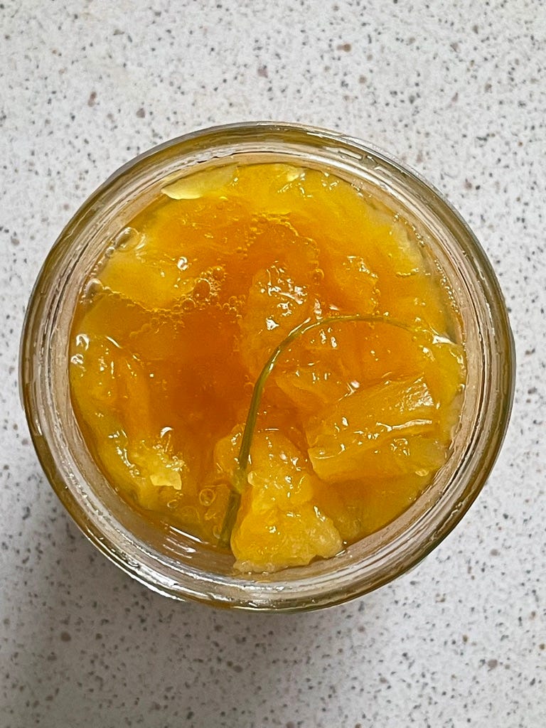 spoon in the cooled pineapple jam, filling the tart to the top of the pastry walls