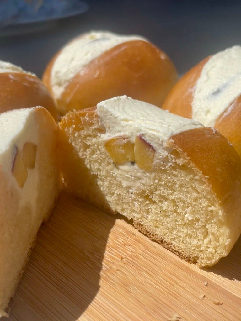 cut a wedge out of the maritozzi bun in the middle (not all the way through!)