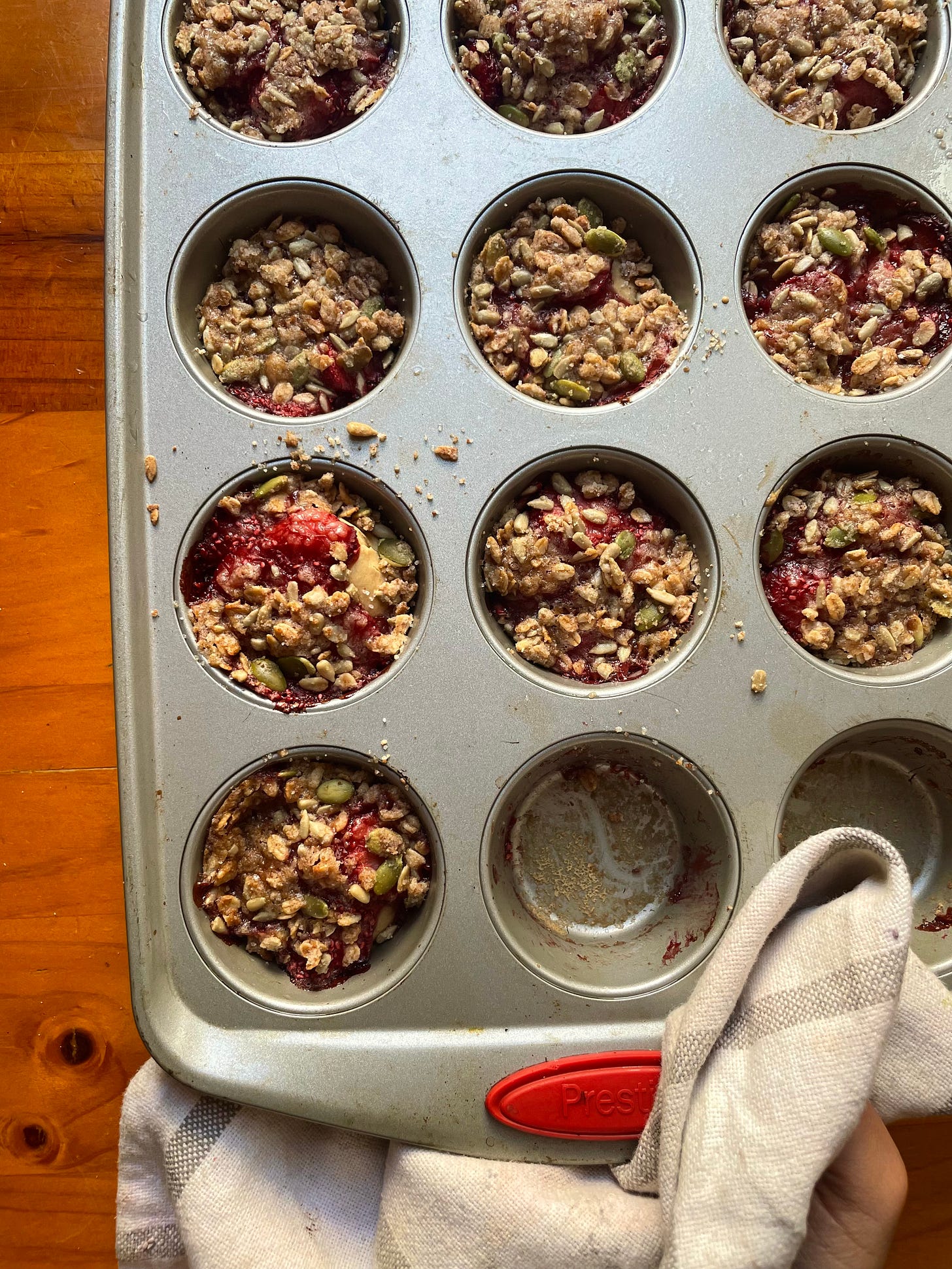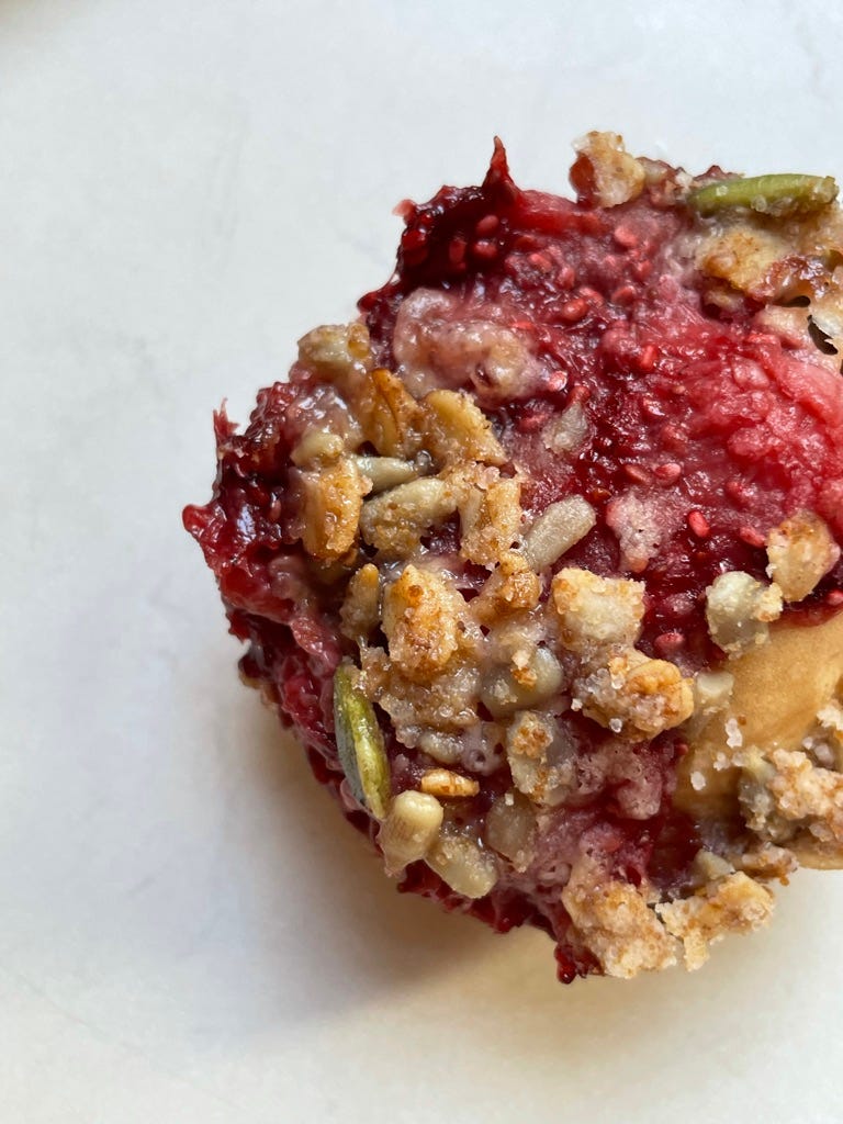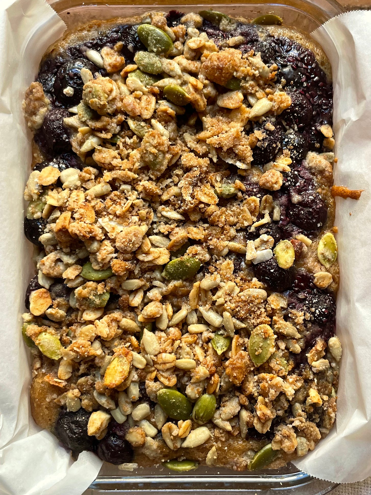 i also tested cashews, almonds, and seeds for the crumble topping and honestly they were pretty indistinguishable! i went for seeds to avoid issues with nut allergies, but feel free to use a mix of whatever is in your pantry