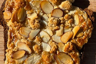 layers of wholemeal burnt honey cake sandwiched with lightly sweetened sour cream