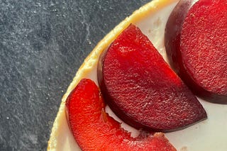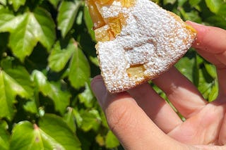 layers of roasted almond meringue, mascarpone cream, and fresh cherries