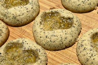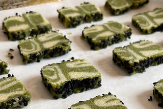 matcha & vanilla swirled shortbreads pressed with black sesame seeds