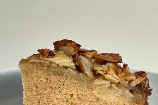 crunchy almond topping, pear & cardamom sponge cake